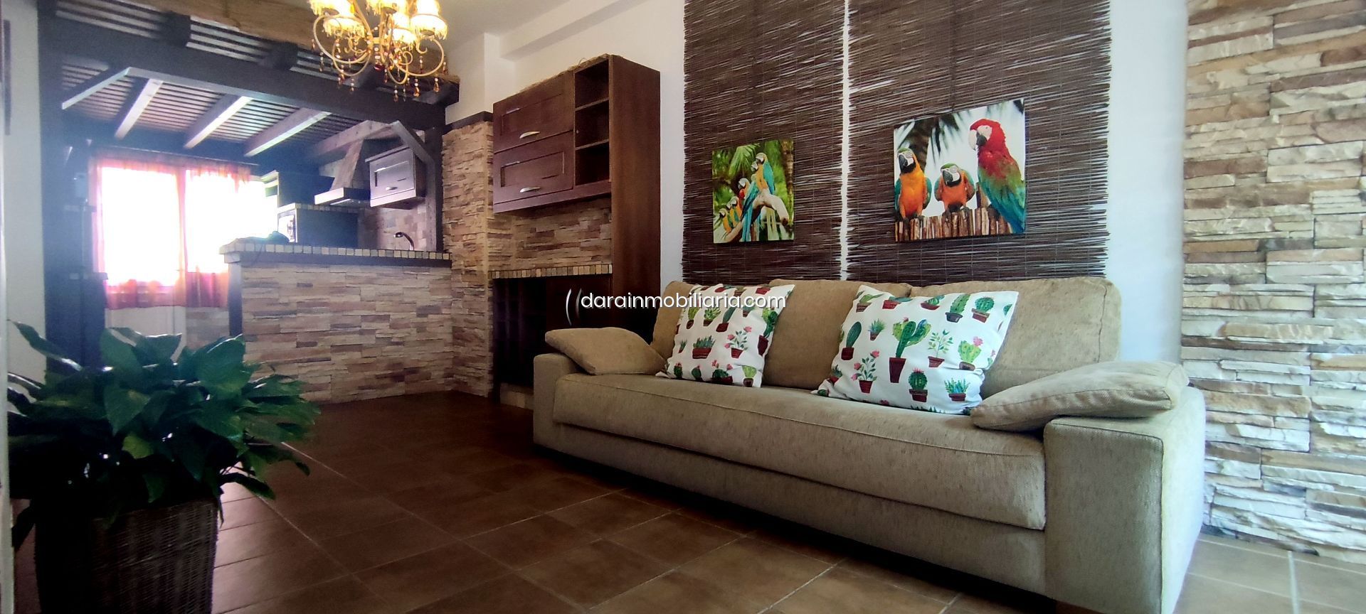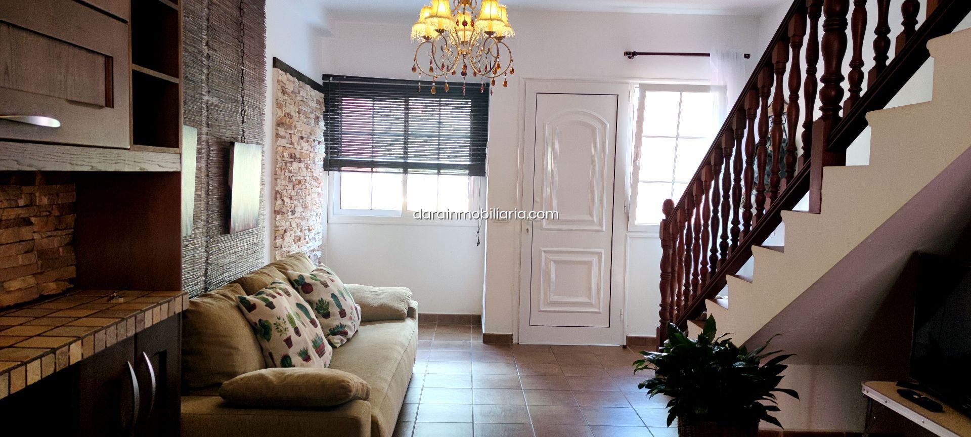 En la planta baja hay un acogedor salón, una barra americana lo separa de la cocina, la cuál está completamente equipada y tiene una salida a la terraza, hay un aseo donde se encuentra la lavadora y un parking a la entrada de la vivienda.